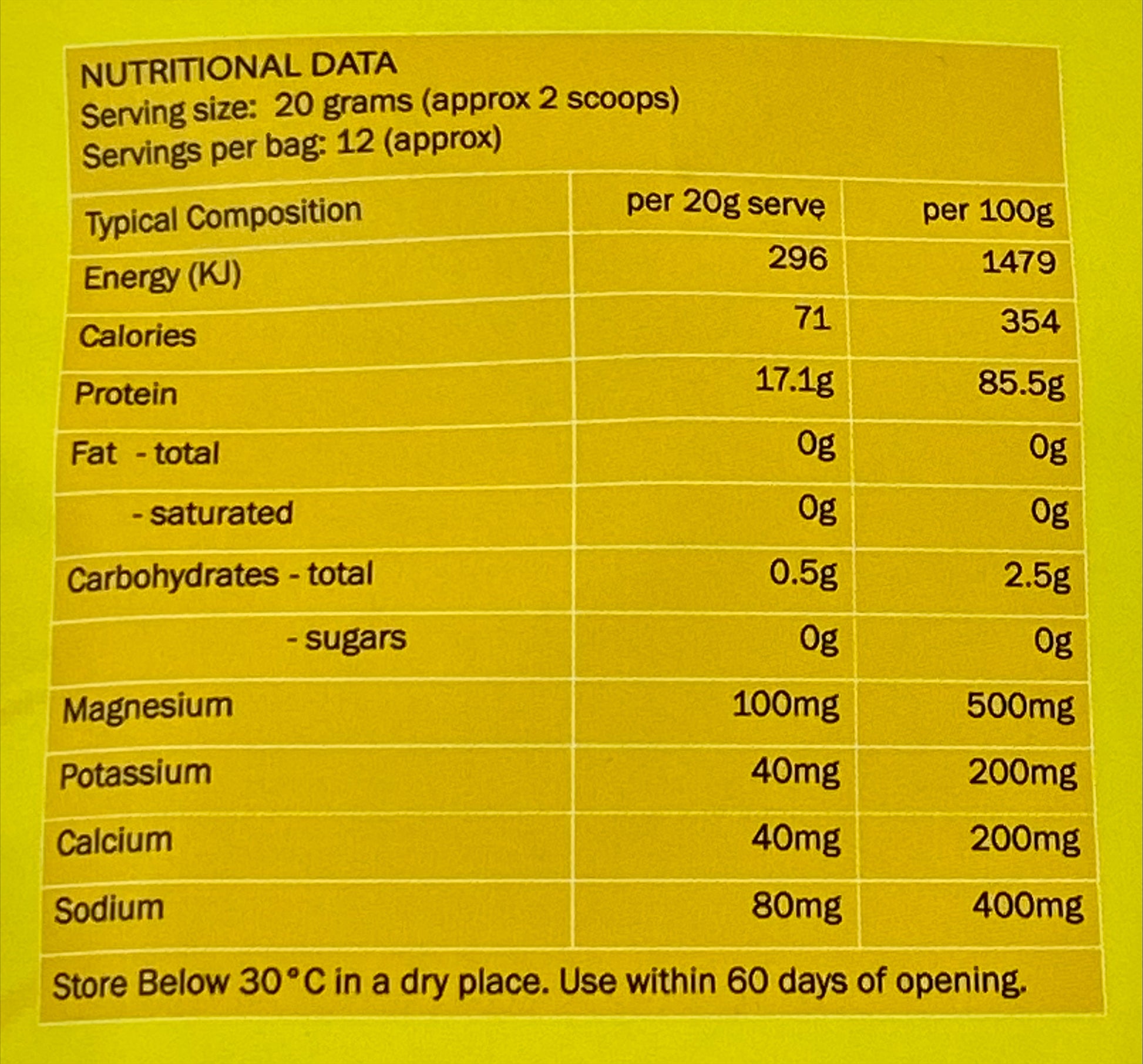 Ingredients: Hydrolysed Bovine Collagen Peptides, Natural Flavours, Magnesium Citrate, Potassium Chloride, Sodium Chloride, Calcium Citrate, Natural Sweetener (Thaumatin & Stevia), Colour