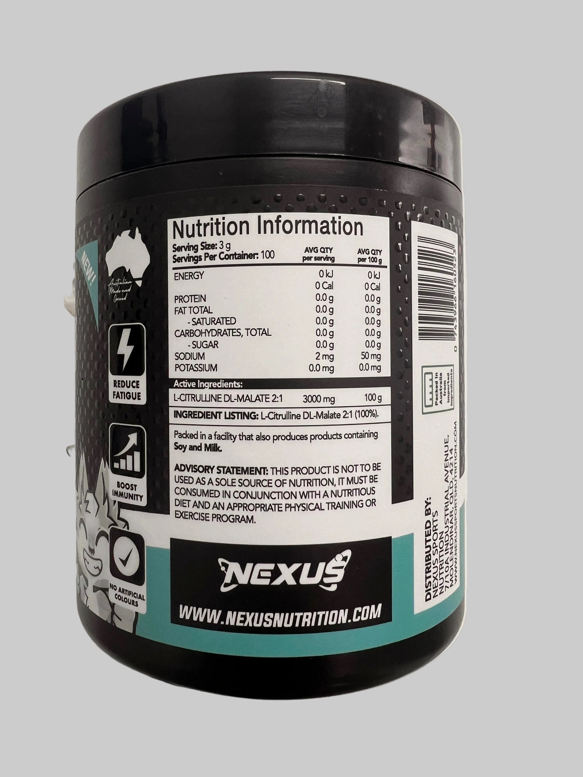 Nexus Sports Nutrition L-Citrulline Malate is a high-performance amino acid supplement designed to enhance endurance, improve muscle pumps, and delay fatigue. Featuring a premium 2:1 ratio of L-Citrulline to Malic Acid, it’s the perfect addition to your pre-workout stack or daily training routine.