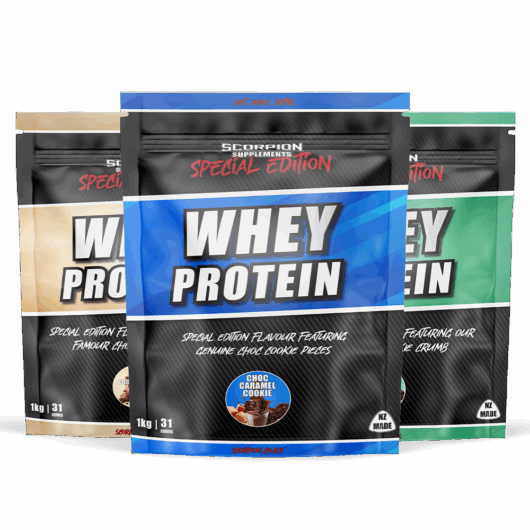 Scorpion Whey Protein Concentrate (WPC) is a premium quality protein supplement, which is designed for athletes, gym goers and people looking to improve their health and vitality. Derived from NZ grass fed cows, Scorpion Whey features a high protein percentage (80% vanilla) which will deliver a full profile of desirable amino acids that will benefit your body. Blended into OUT OF THIS WORLD flavours (including 100% naturally sweetened options), Scorpion Whey tastes amazing and mixes instantly. Scorpion Whey is the ultimate protein source.
